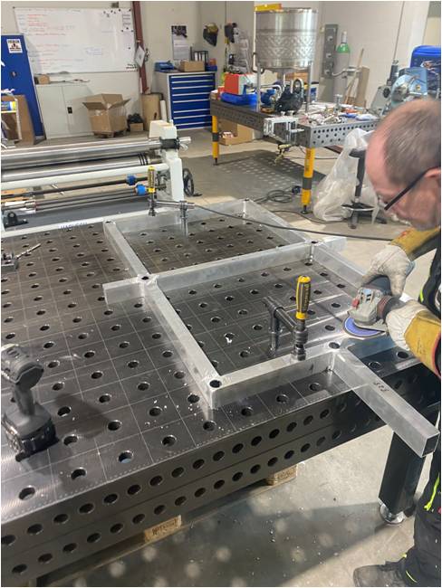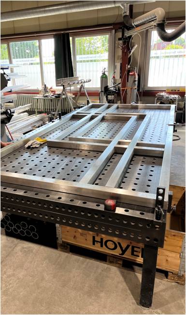 Mit einer Vielzahl verschieden großer Spanntische und einem riesigen Sortiment an Zubehör ist es uns möglich Gestelle, Rahmen und Konstruktionen, ohne großen Verzug der Bauteile, zu heften und abzuschweißen.