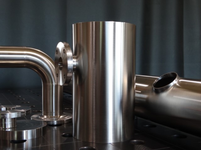 Durch das Strahlen mit eisenfreien, chemisch neutralen Glasperlen entsteht eine gleichmäßige, saubere und seidenglänzende Oberfläche – ideal für Bauteile aus dem Anlagen-, Behälter- und Apparatebau.